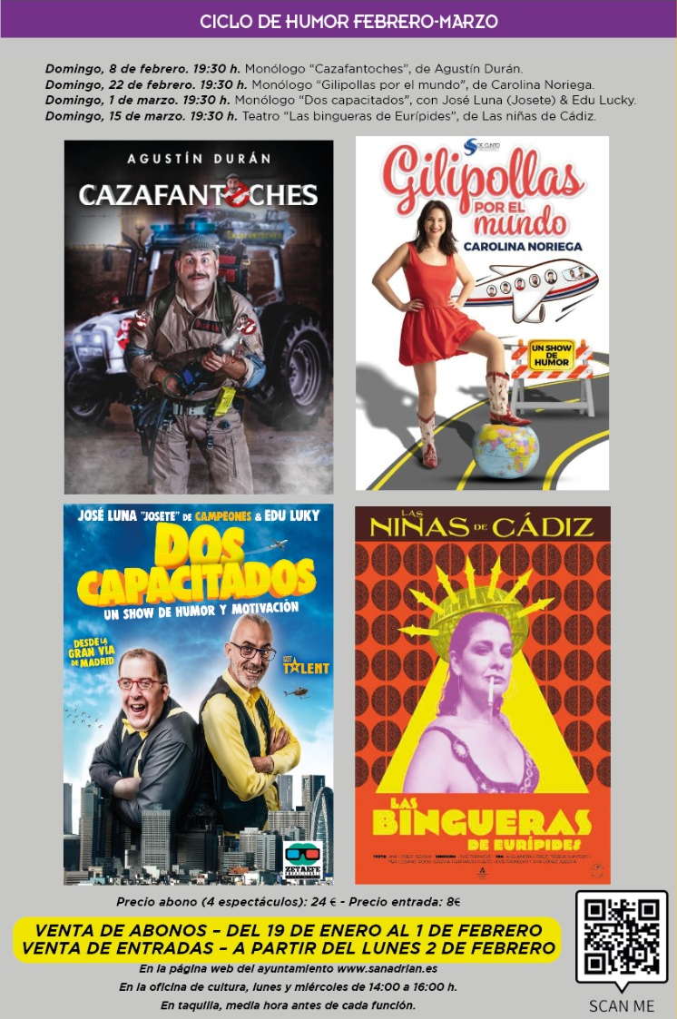 Domingo, 8 de febrero. 19:30 h. Monólogo “Cazafantoches”, de Agustín Durán. En los últimos años Agustín Durán ha engordado unos 15 kilos, hay quien piensa que ha sido a base de comer panceta y no quitarle lo blanco al jamón… Pero no, lo que le...