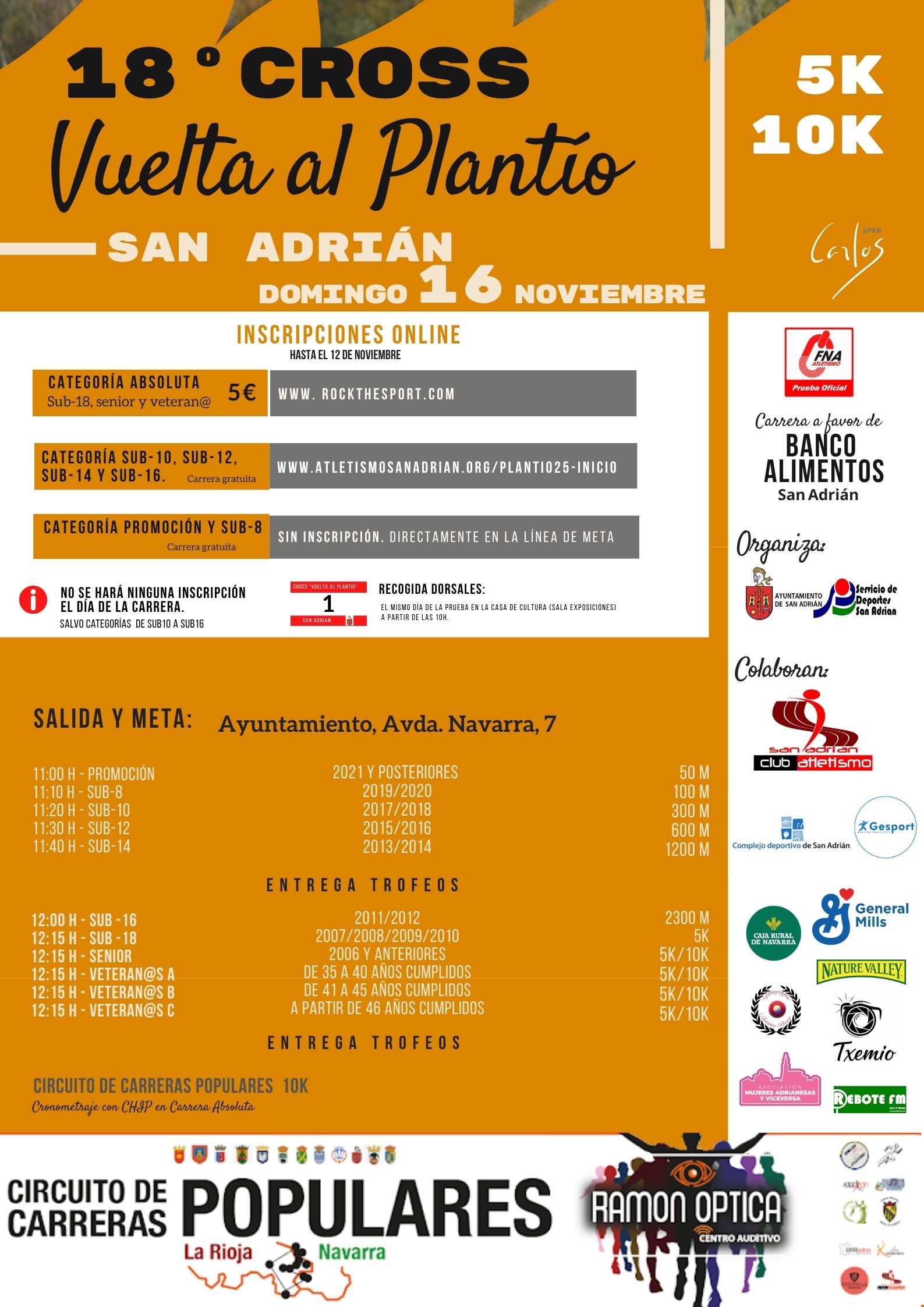 - Sub-18, senior y veteran@s (precio 5€). Inscríbete 👉🏻 aquí. En estas categorías ¡NO SE HARÁN INSCRIPCIONES EL MISMO DÍA DE LA CARRERA!