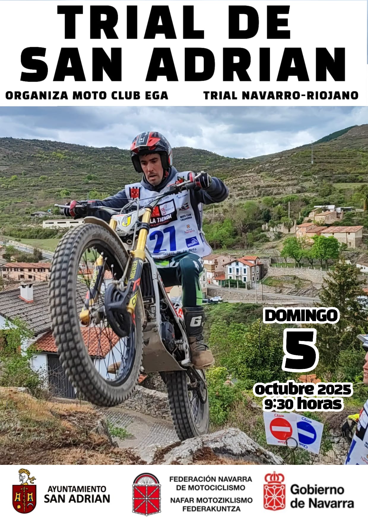 octubre, 202505oct09:3014:00TRIAL DE SAN ADRIANDetalles Detalles Hora(Domingo) 09:30 - 14:00 Ubicacióncarretera antigua de los "Altos de Peralta" Organizador Motoclub Ega CalendarioGoogleCal